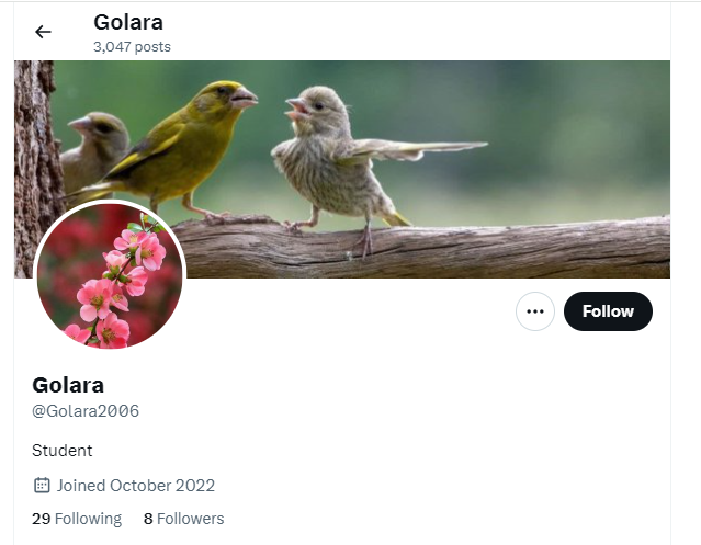پنجمین کاربر فعال در این کارزار، با نام «گولارا» و شناسه کاربری «Golara۲۰۰۶» و با گرایش ارزشی است. زمان پیوستن این کاربر در توئیتر از ۲۴ مهرماه ۱۴۰۱ با تعداد فالوورهای ۷ نفر است. عمده فعالیت و تولید محتوا این کاربر، بعد از زمان انتشار گزارش بیبیسی درباره سند مرگ نیکا شاکرمی با تعداد ۵۵ توئیت بوده است.