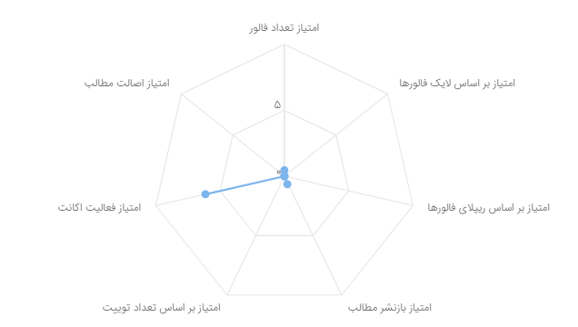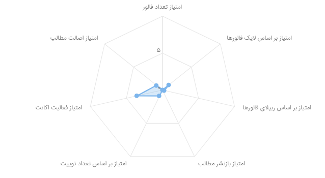 محتوای اصلی توئیتهای این کاربر نیز درباره قتل نیکا شاکرمی است و تعداد لایکها،ریت و کامنتهای این کاربر نیز اندک ( تعداد لایکها بالای ۲۰۰، تعداد ریتها بالای ۱۱ و تعدد کامنتها ۱۰) است که نشان از اعتبار به نسبت کم این اکانت دارد.