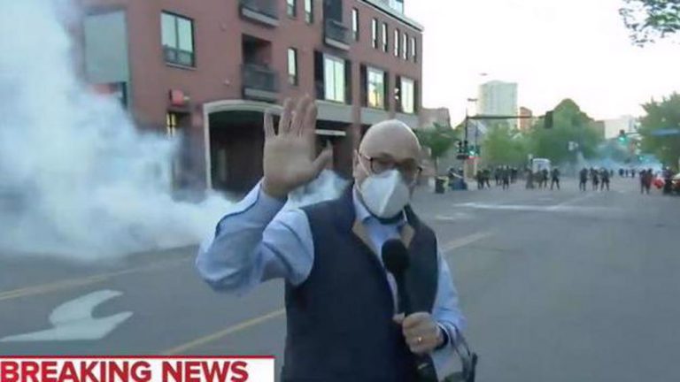 رئیس جمهور ایالات متحده ، یک خبرنگار مسلمان را که در یک اعتراض مسالمت آمیز با گلوله لاستیکی مورد اصابت...